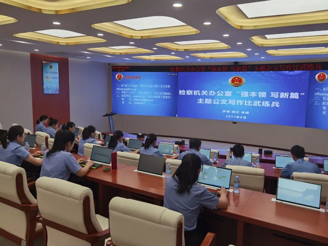 为深入贯彻党的二十大精神,落实最高人民检察院好用的足球竞彩app加强新时代检察机关办公室工作要求,进一步提升检察干警写作能力和水平,8月26日至27日,承德市检察院与内蒙古赤峰市检察院、通辽市检察院联合举办“强本领 写新篇”主题公文写作练兵比武活动,市检察院办公室主任刘玥昕带领双桥区、营子区、围场县、丰宁县和兴隆县检察院7名写作骨干到赤峰市检察院参加比赛。